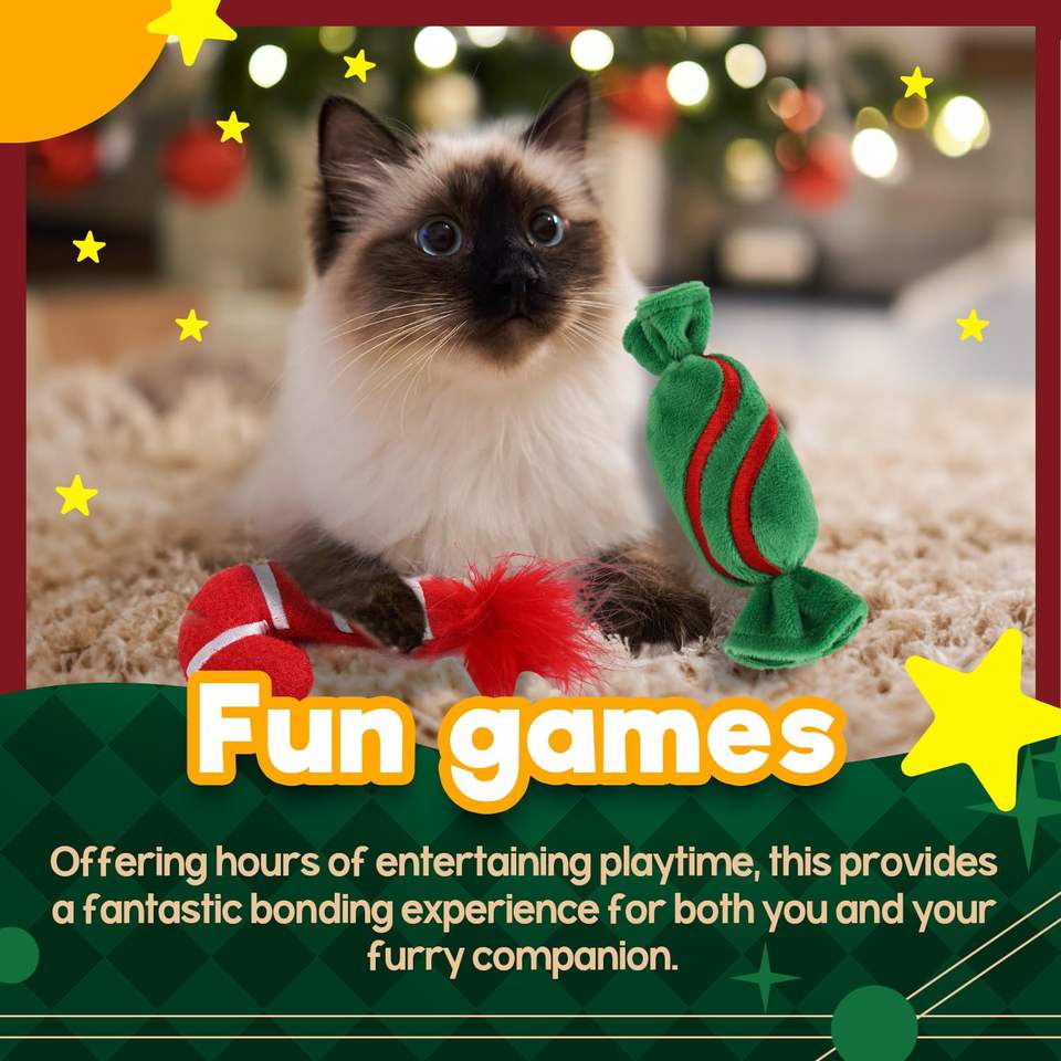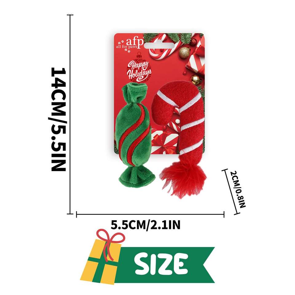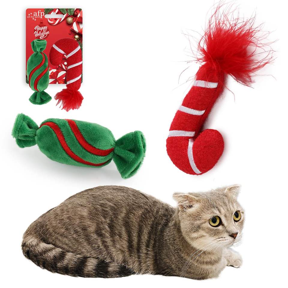 AFP Giocattoli Natalizi per Gatti in Peluche Morbidi Resistenti ai Morsi a Forma di Caramella e Bastoncino di Zucchero con Erba Gatta, Giocattoli da Masticare per Gattini