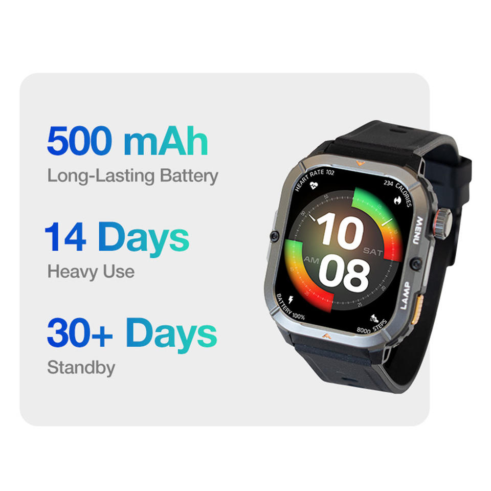 AGM Watch W3 1.95 OLED Display 5ATM Waterproof Strong Flashlight 500mAh BT Call Health Tracker Sports Rugged Smart Watch for Men