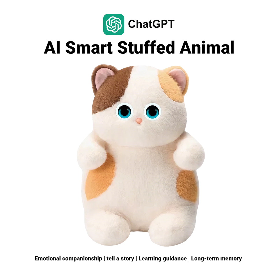 Giocattolo Educativo AI in Peluche a Forma di Gatto in Calico, Robot Intelligente con Controllo Wi-Fi e App, Attivazione Vocale e Monitoraggio dell'Umore per Bambini
