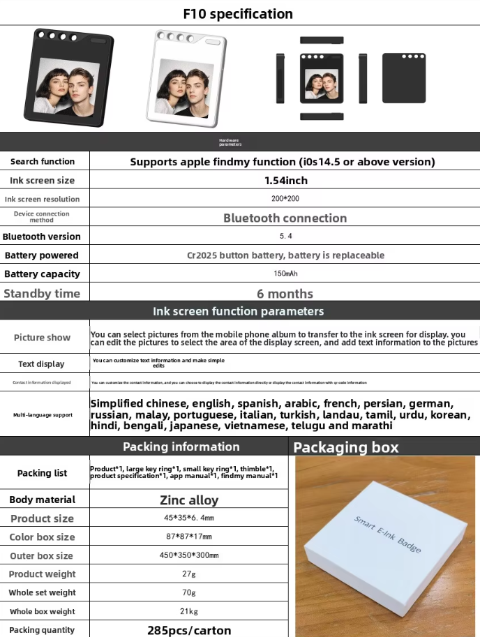 Display Intelligente AI con Schermo E-Ink, Visualizzazione Testo/Immagine/Contatti, Condivisione Wireless e Connessione a Dispositivi Smart F10