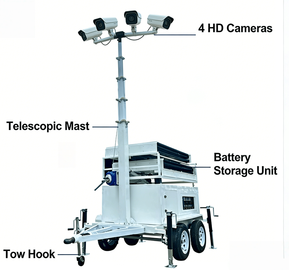 Telecamera Termica AI con Rilevamento Umano e Veicolare per Rimorchio di Sorveglianza Solare su Siti Industriali