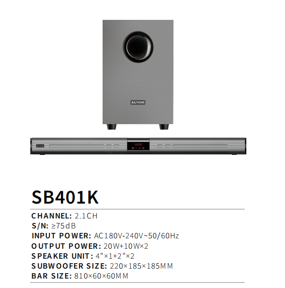 AILYONS 2.1 canale TV Surround Multimedia Home Theater Sound bar con altoparlante Subwoofer