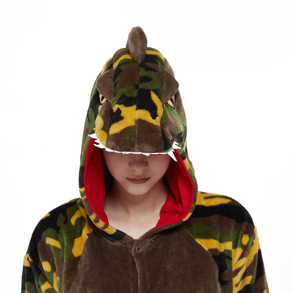 AIMINYZ Wholesale New Fashion Design Camouflage Green Autumn Polar Flannel Cartoon Animal Winter Warm Dinosaur Adult Pajamas