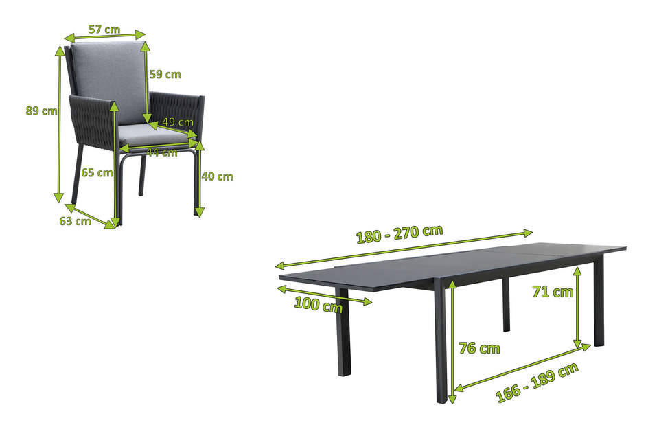 Table Size:L180/270 x W100 x H76 cm
