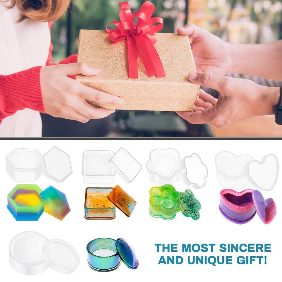 AK 3D Heart Epoxy Resin Silicone Molds for Resin Casting, Square Epoxy Molds Hexagon Crystal Resin Casting Mold for DIY Craft