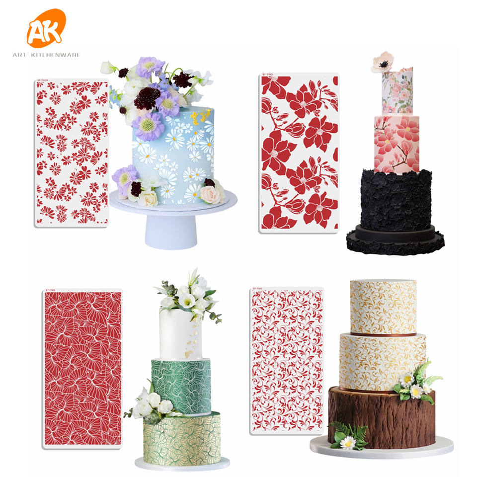 AK Custom Flower Plastic Cake Stencil Flower Laser-Cut Fondant Icing Cake Decorating Sugar Sieve Painting Template Moulds Pastry