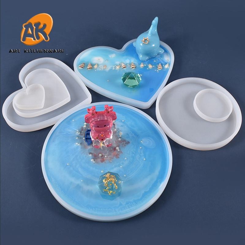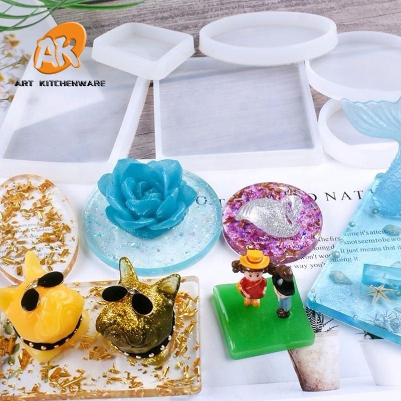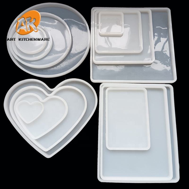 Stampo in Silicone AK per Sottobicchieri Rotondi, Quadrati, Rettangolari e a Cuore, Stampo in Resina Epossidica per Base Porta Gioielli Fai da Te, Vassoio per Tazze e Decorazioni per la Casa