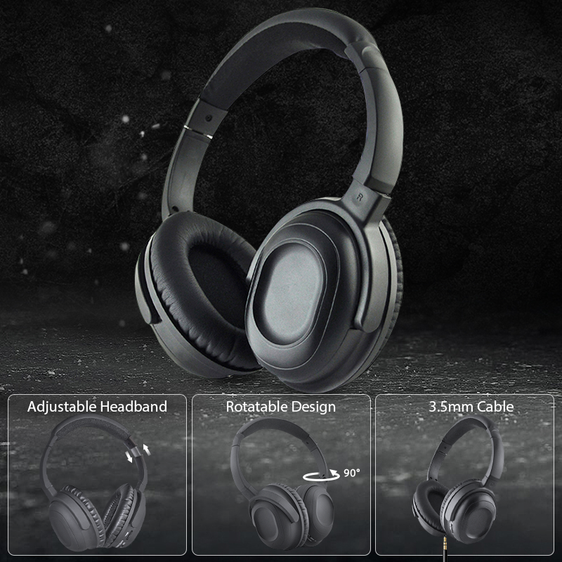 Cuffie Cablate AKAUDIO con Cancellazione Attiva del Rumore, Robuste con Finitura in Gomma, Alimentate a Batterie