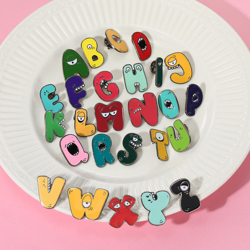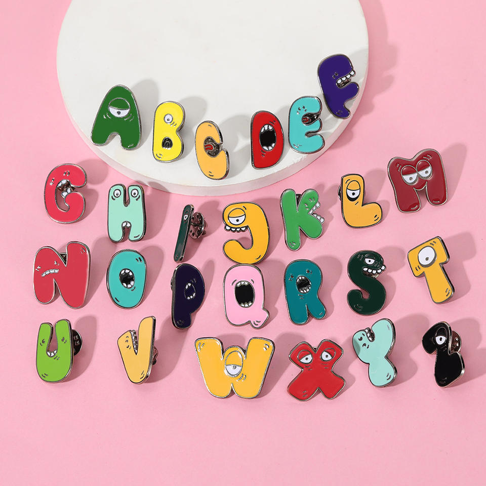 Spilla con Lettere dell'Alfabeto Inglese in Lega Elettroplaccata, Simpatica e Divertente, Distintivo Personalizzato con Abbreviazione del Nome