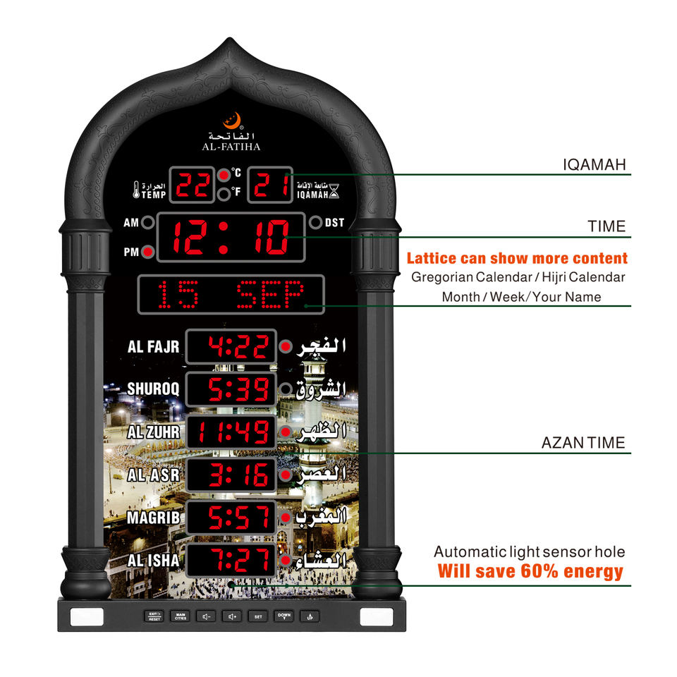 AL FATIHA 4008 Mosque Factory Ramadan Islamic LED Azan Clock Quran Bluetooth Muslim Al Fajr Desk atano Wall Azan Clock