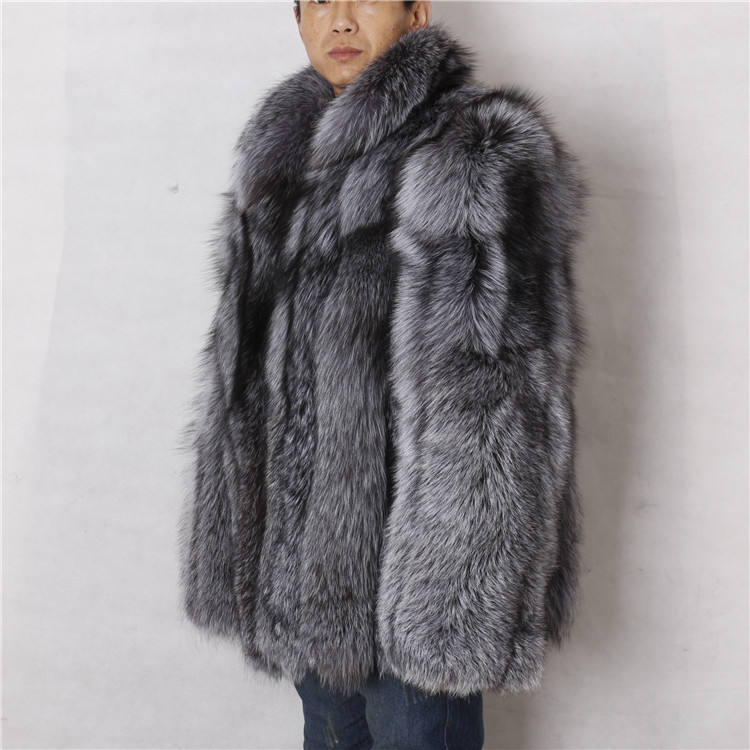 ALICEFUR uomo di Alta qualità del cappotto del rivestimento di medio lungo naturale volpe d'argento cappotto di pelliccia per gli uomini