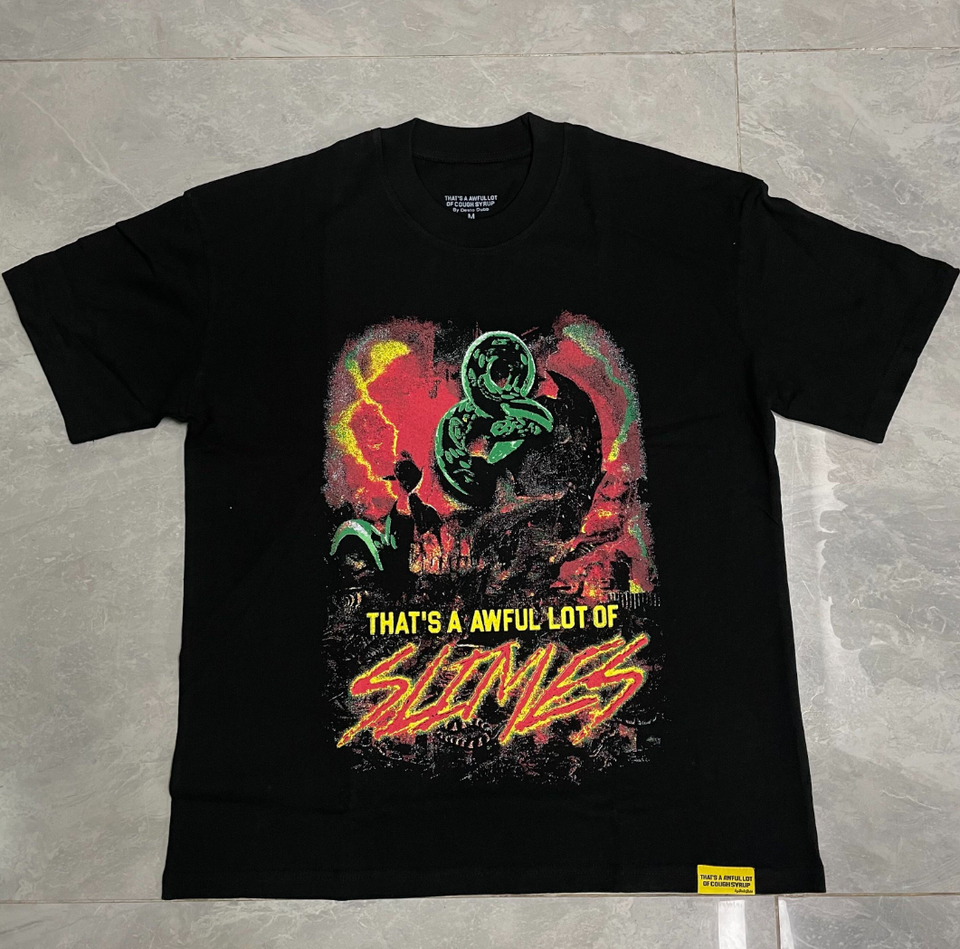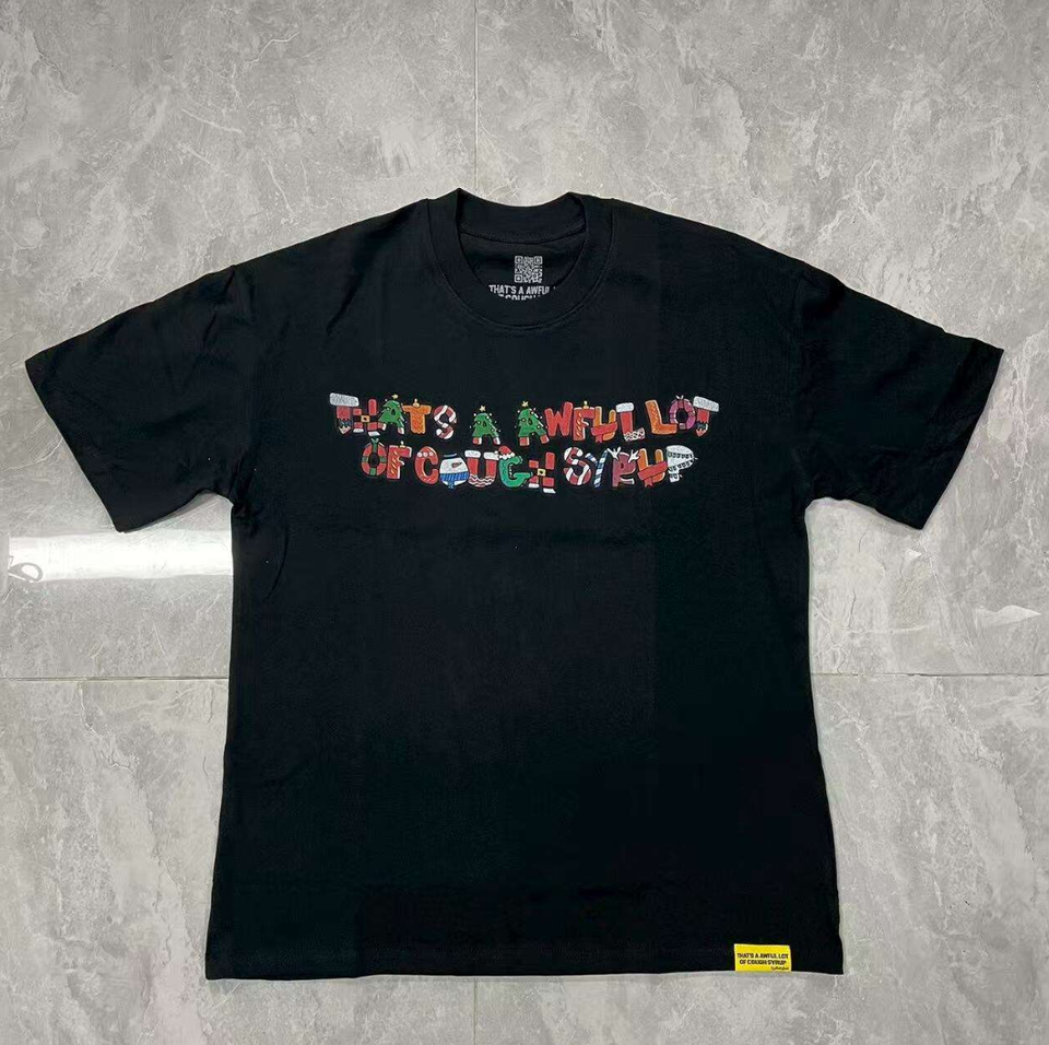 ALOCS T-shirt Classic Cough Syrup, 100% cotone, bianca, con finitura riflettente per scansione, taglie S-XL