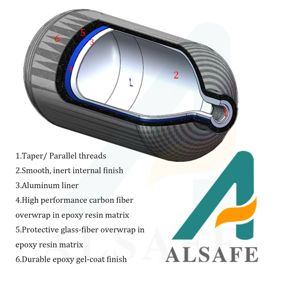 ALSAFE 300bar 0.5L High Pressure Carbon Fiber Cylinder 500cc Pcp air tank