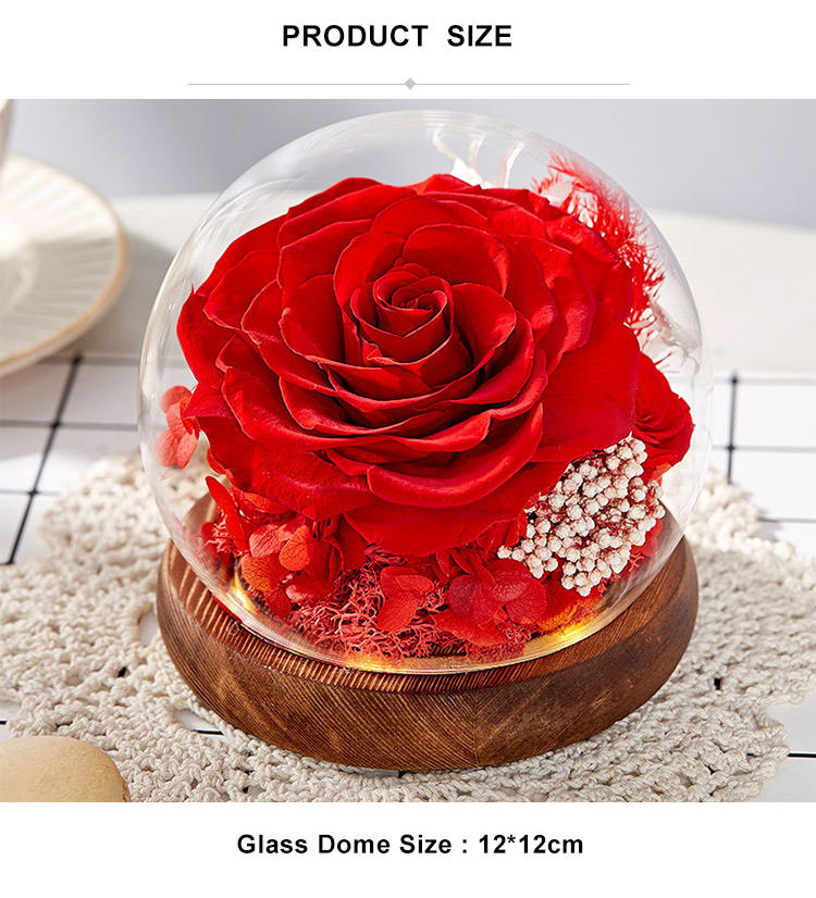 AM-PFA50 Ammy Preserved Flower Finished Rose Flower Glass Cover Valentine's Day Gift Creative Gift Box Wedding Decoration