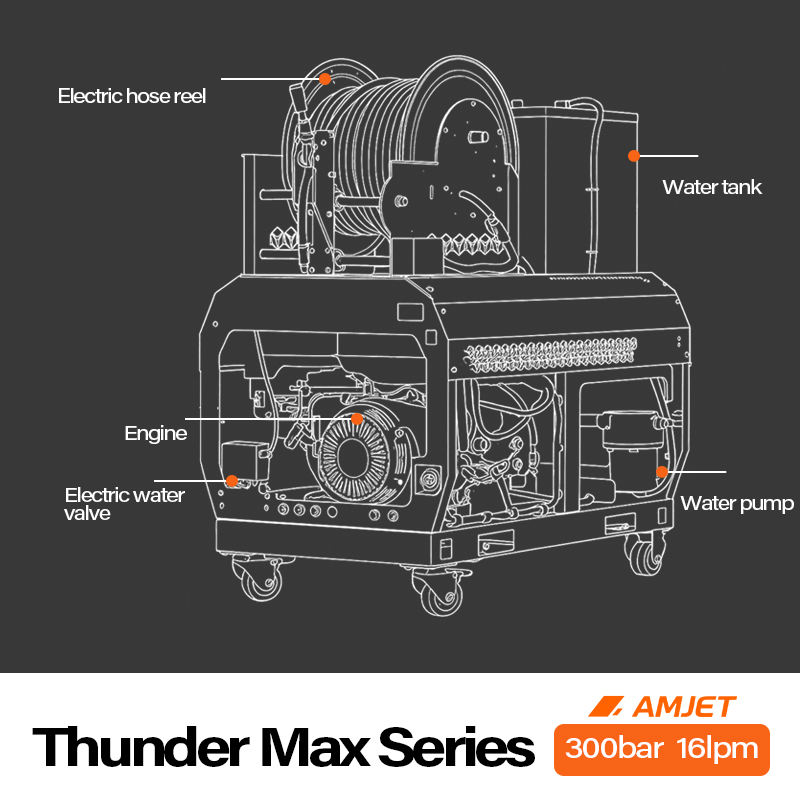 Idropulitrice ad Alta Pressione AMJET TS3016 MAX, 300 bar, 16 l/min, 13 CV, Strumento Professionale per Idraulici e Pulizie