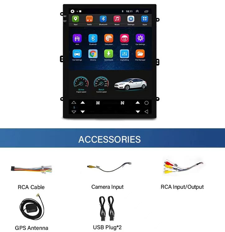Porta AUX, Inversione Regime di Aiuto, Altro, Lettori MP3 / MP4, Sintonizzatore Radio, Macchina fotografica di Backup, Gps integrato, Trasmettitore di FM, Touch Screen, Lettore CD, TV, Schermo alto, HDMI In/Out, Dvr, Lettore CD/VCD