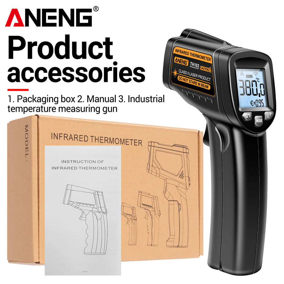 Termometro Industriale a Infrarossi Laser ANENG TH103 con Display LCD, Risoluzione 0.1°C, Schermo Retroilluminato in ABS, Blocco Dati, Misuratore di Temperatura