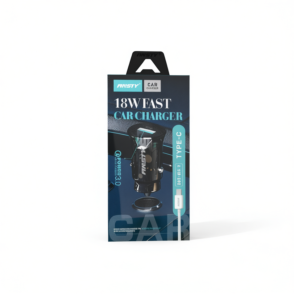 Caricabatterie per auto ANSTY 18W Type-C a ricarica rapida per dispositivi digitali