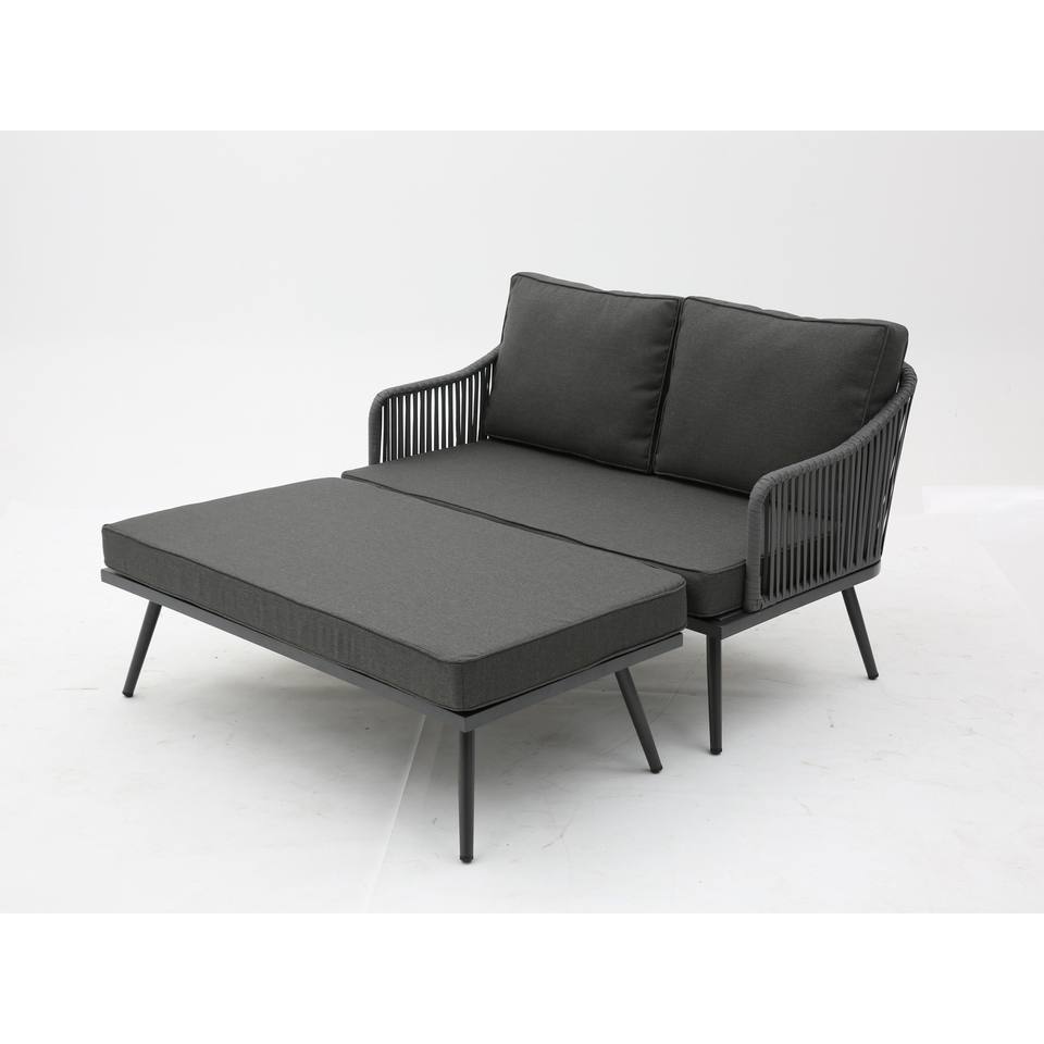 Set Divano e Panca in Metallo Antracite e Corda