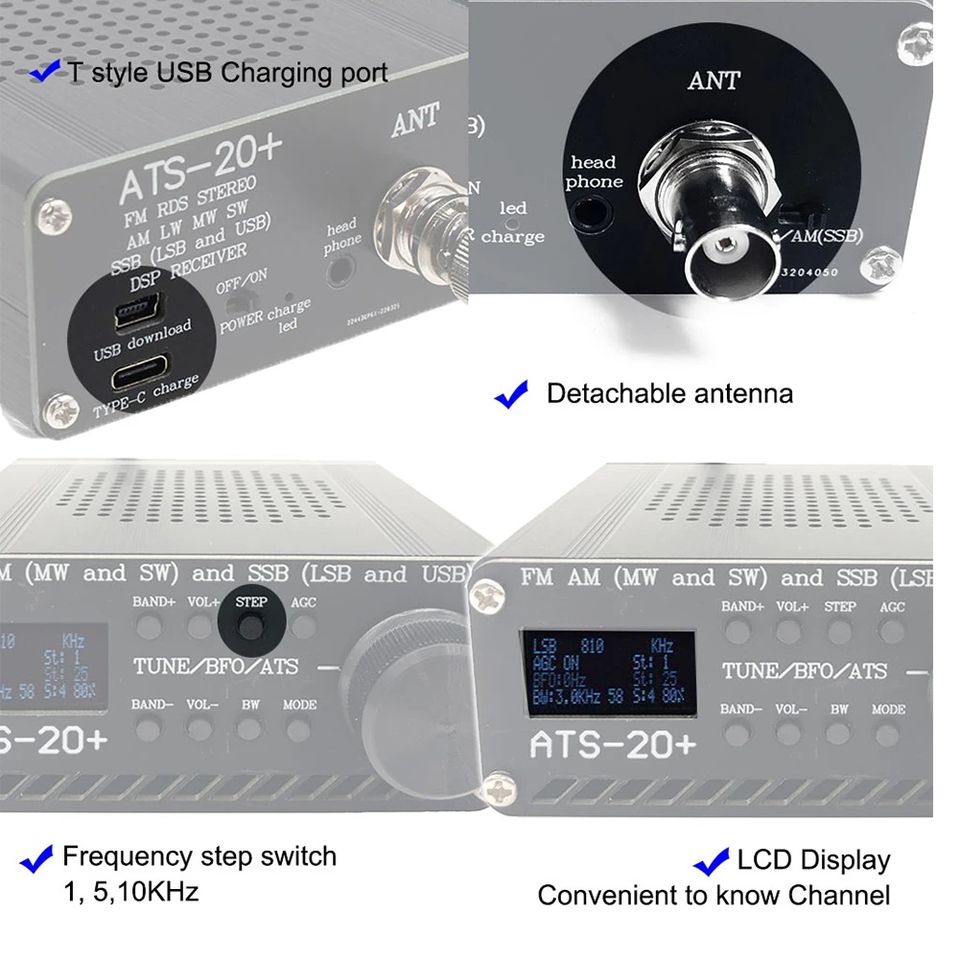 Ricevitore Radio ANYSECU SI4732 ATS-20+ Tutte le Bande FM AM (MW e SW) SSB (LSB e USB) Scanner Radio Portatile Palmare