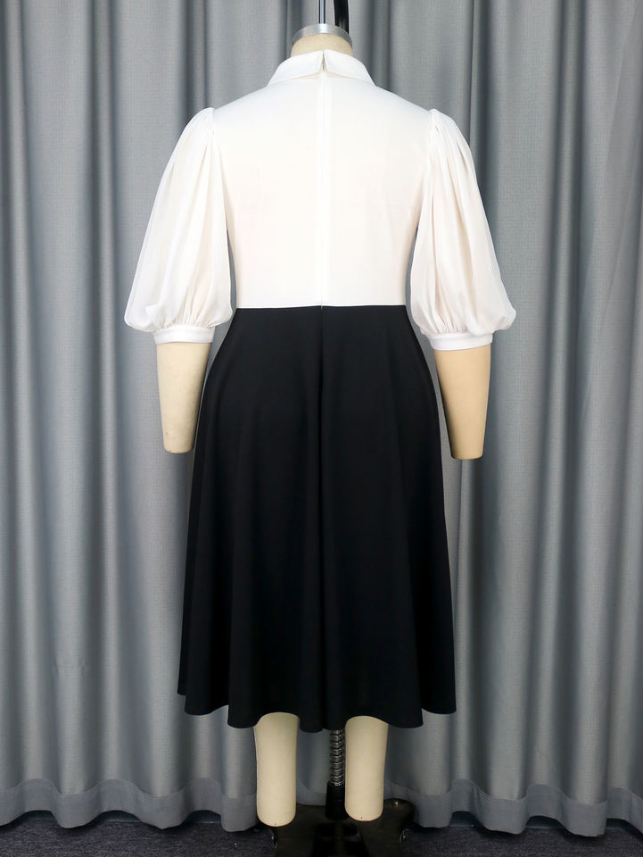 AOMEI Lapel Collar Lantern Sleeves School Uniforms Young Girls Black White a Line Casual Dresses