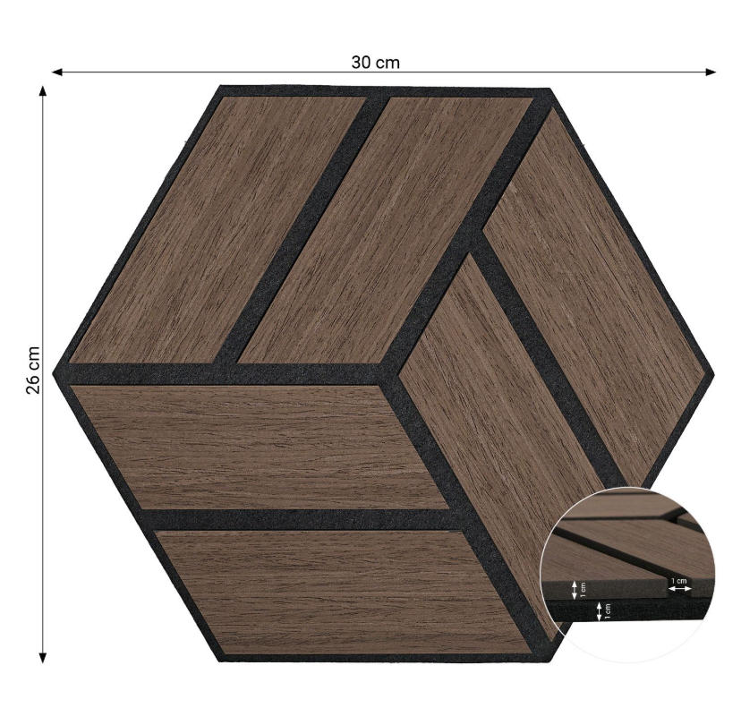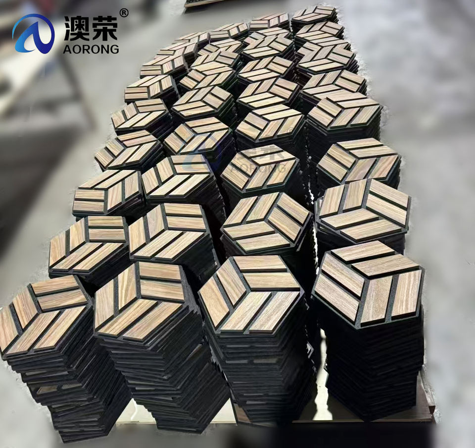 AORONG impiallacciatura di legno opzionale personalizzabile esagonale pannelli di parete acustica 9MM MDF Board + 12MM PET poliestere feltro pannello di parete