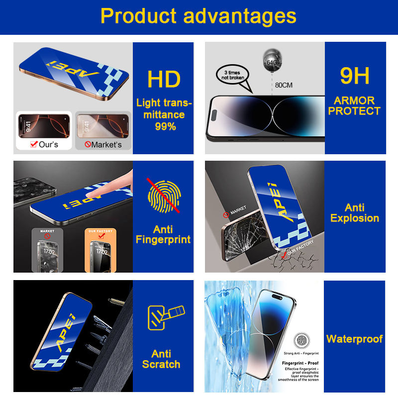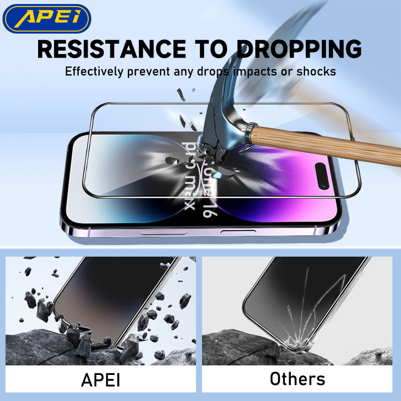 Pellicola Protettiva in Vetro Temperato APEI 9H+ Indistruttibile per iPhone 12 13 14 15 16 17 Pro Max, Protezione Schermo Antigraffio per Samsung