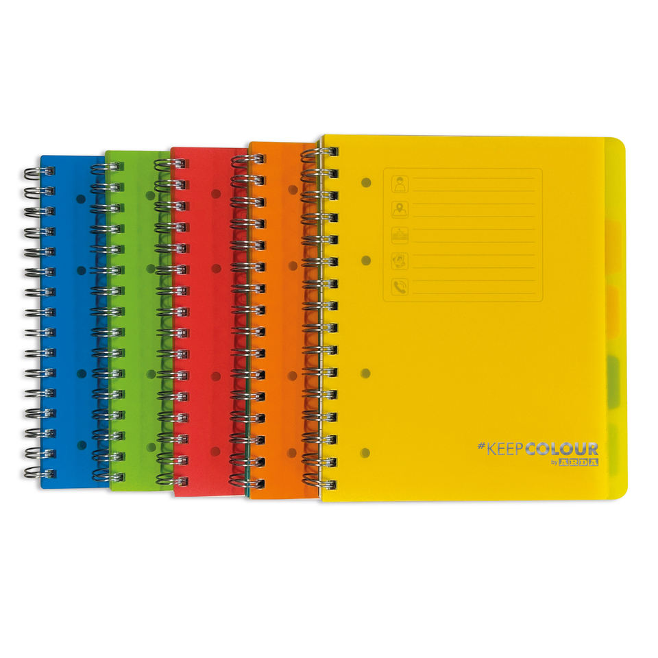ARDA - Quaderno a spirale KEEP COLOUR con divisori, 120 fogli a quadretti da 5 mm, assortiti