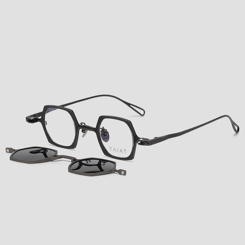 ARLT Vintage Retro Polarizing Sunglasses with Hexagonal Titanium Frame Hanging Clip Magnetic Personality Style Model ARLT 5979