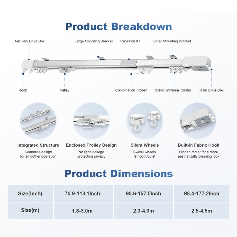 ARODDY Binario per Tende Automatico Bianco 1.8-3m Compatibile con Alexa e Homekit, Binario Motorizzato per Tende