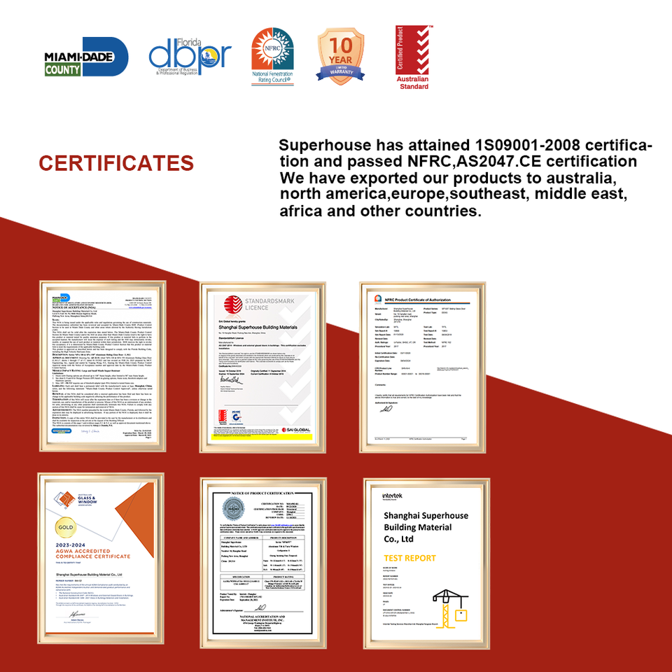 Standard/Certificate:comply with AS2047 NFRC DADE