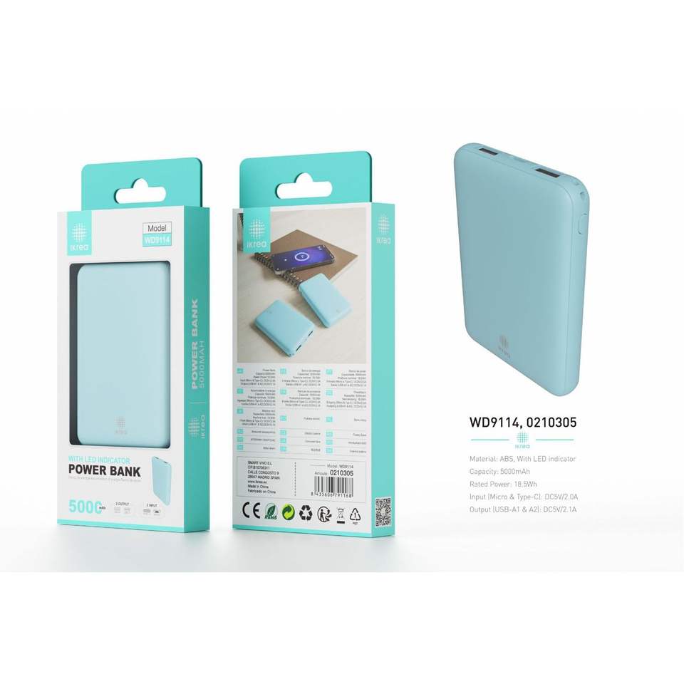 Batteria portatile ad alta capacità ASB 5000mAh con indicatore a LED leggero 22.5w ricarica rapida blu-per presa Standard giapponese