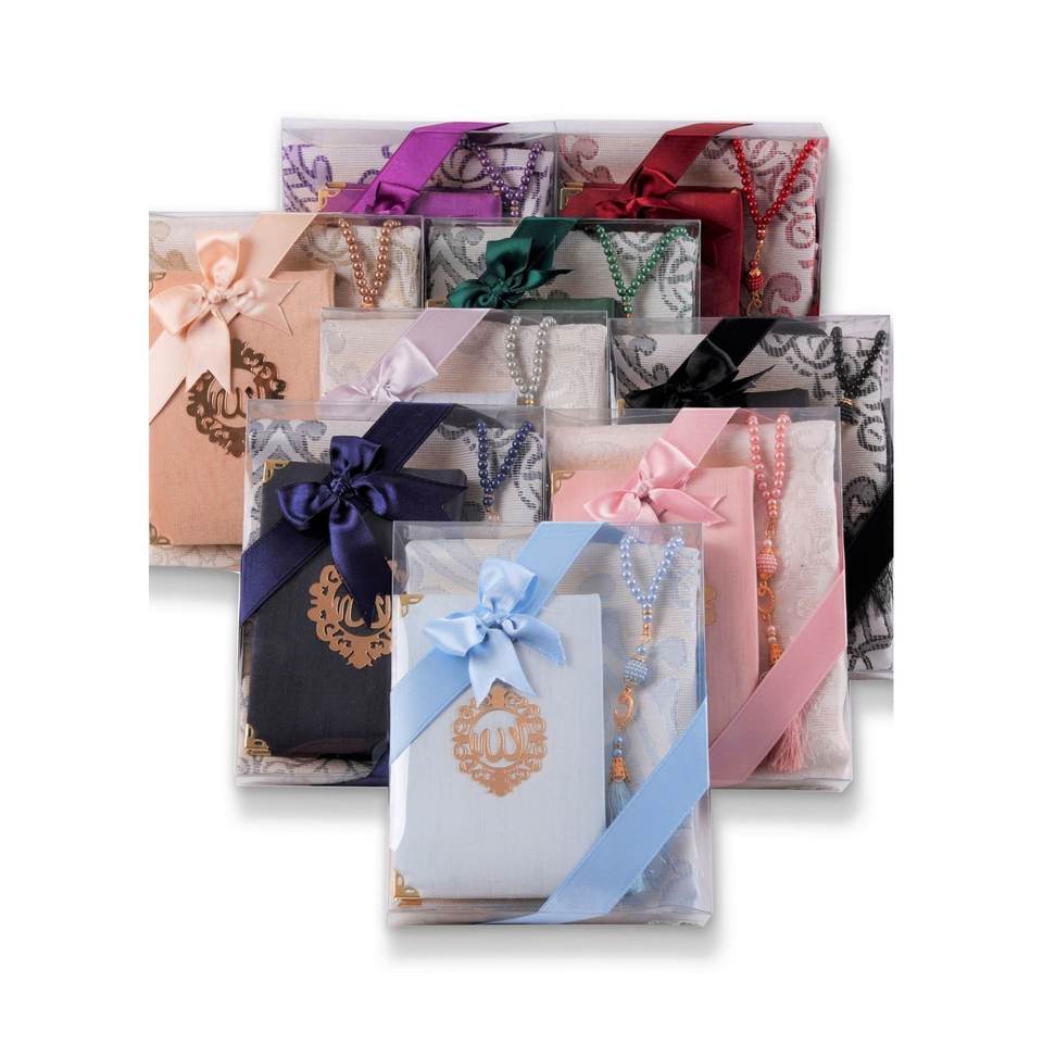 Set Serie ASEL 3 Pezzi: Tappetino da Preghiera in Cotone, Rosario di Perle, Corano Essenziale - Forniture Ramadan HEDYEL CROWNS 0851 Multicolore