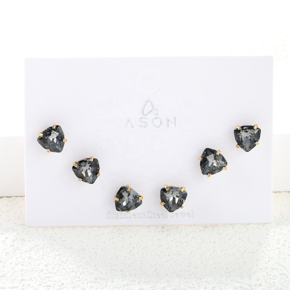 ASON Jewelry 3Pair/Card Mini Earrings Set Multicolor CZ Stud Earrings Stainless Steel Heart-Shaped Birthstone Earrings Wholesale