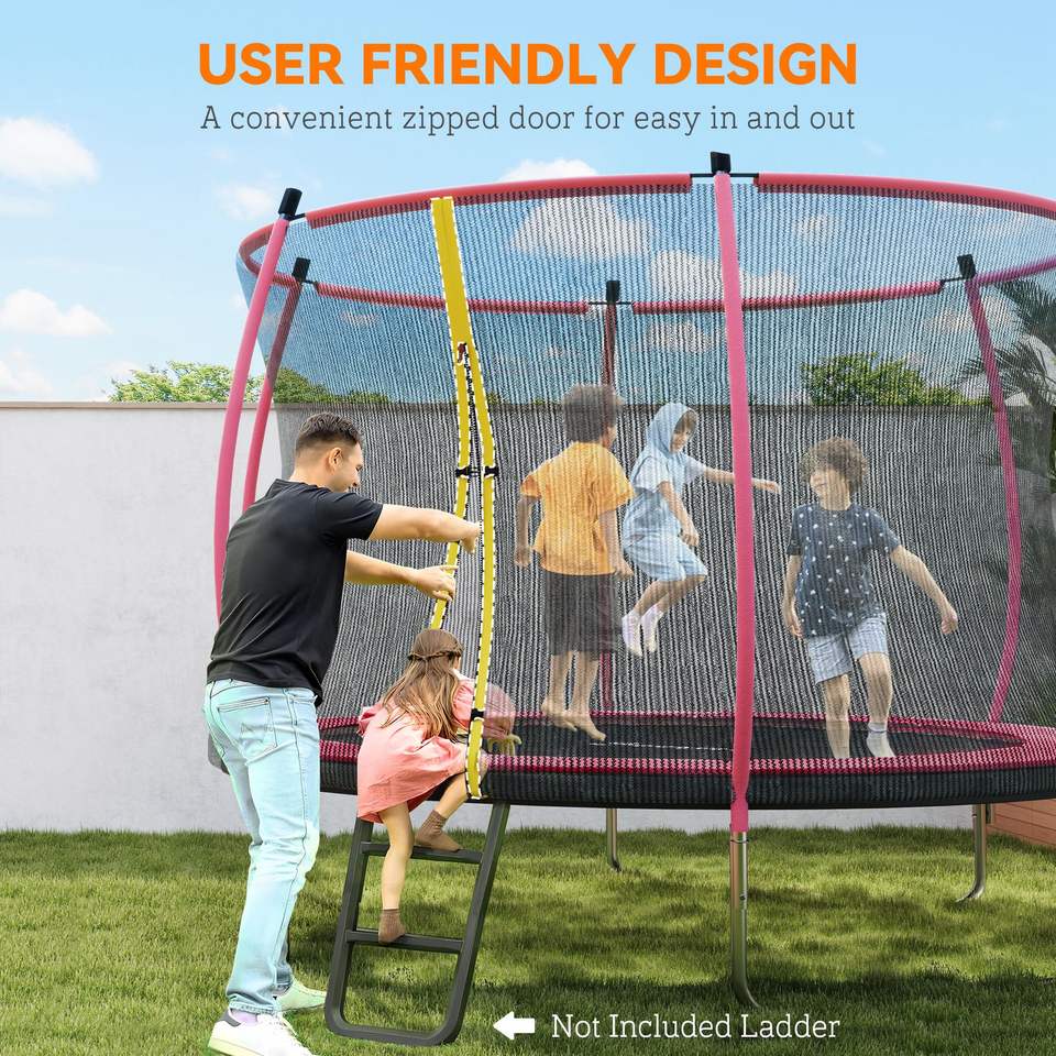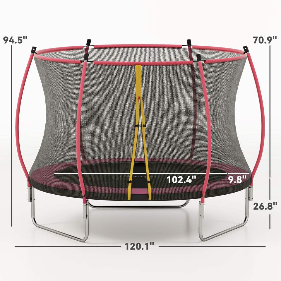 Trampolino da Esterno Rosa da 3 Metri Approvato ASTM con Rete di Sicurezza e Pali Curvi