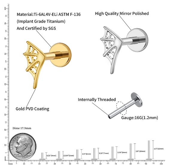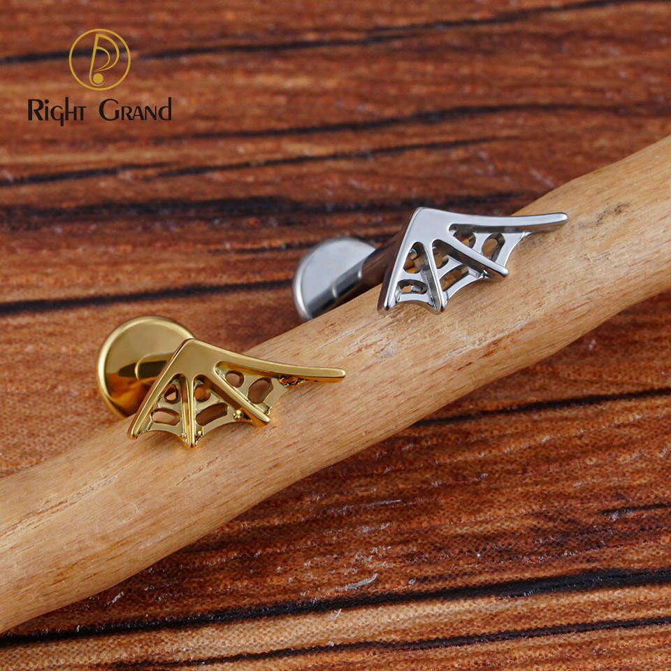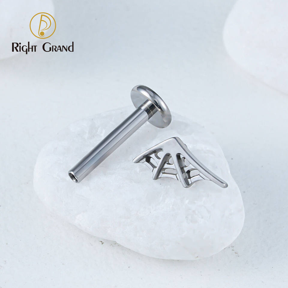 Orecchini a Ragnatela ASTM F136 8mm Labret per Feste di Halloween Piercing Labbra Trago 16G Oro PVD Helix Cartilagine Trago