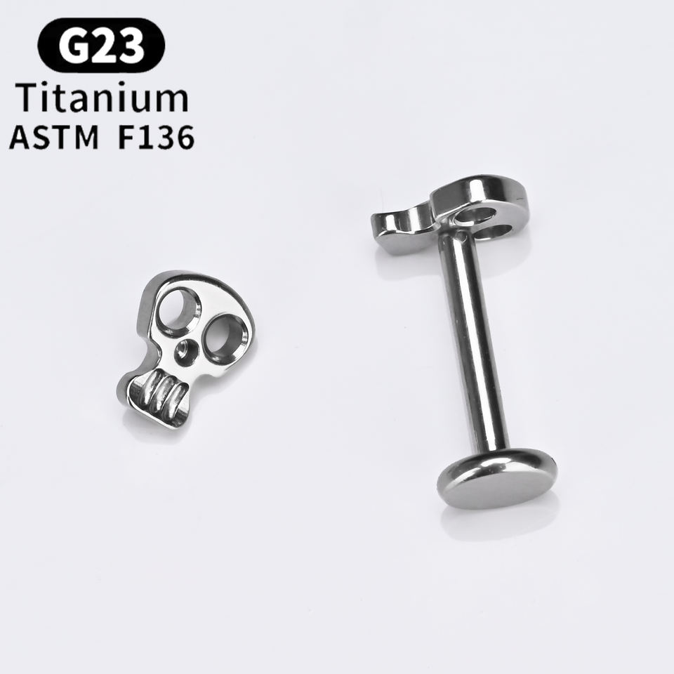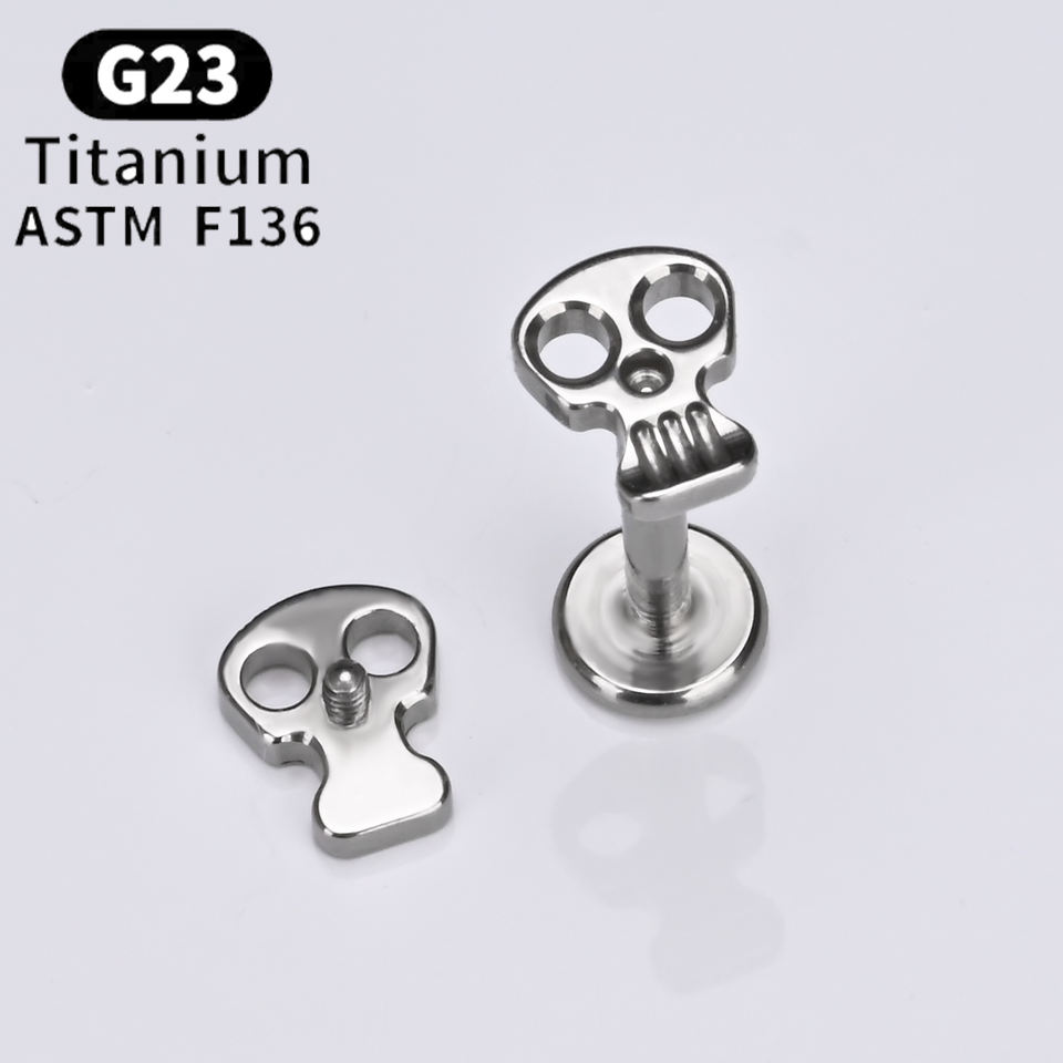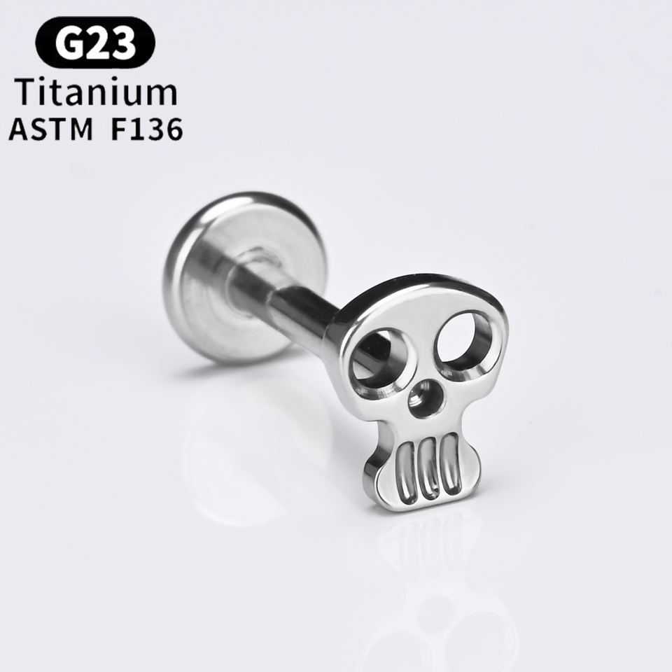 Gioielli per Piercing in Titanio ASTM F136 con Filettatura Interna a Forma di Teschio 16G 8mm Punk per Helix Labbra Orecchie