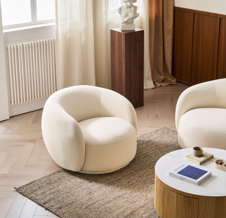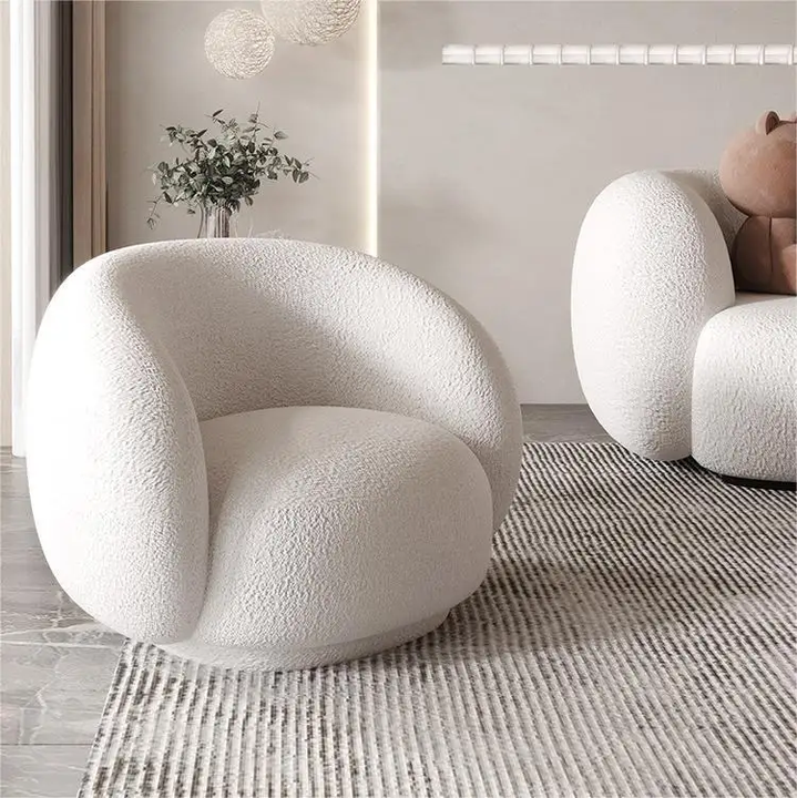 Materiale velluto di lana d'agnello: L'utilizzo di lana d'agnello e velluto di alta qualità offre un'esperienza di seduta morbida e confortevole, migliorando il lusso e il comfort complessivo della poltrona.
