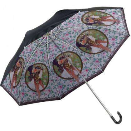 AU-02518 Mucha Art ombrello pieghevole capelli castani e rose per la protezione della pioggia e del sole
