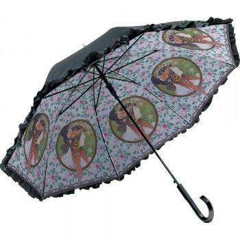 AU-02612 con volant Art Jump ombrello pioggia e sole Mucha "capelli castani e rose"