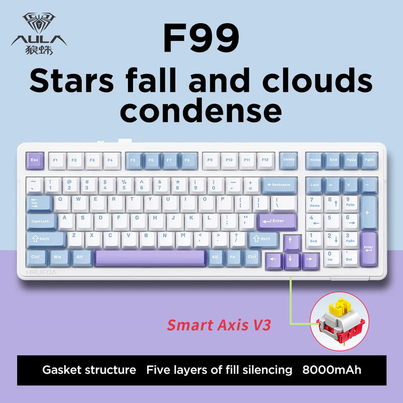 AULA F99 Pro BT Tastiera meccanica wireless per gaming con retroilluminazione RGB, montaggio a guarnizione, programmabile e DIY