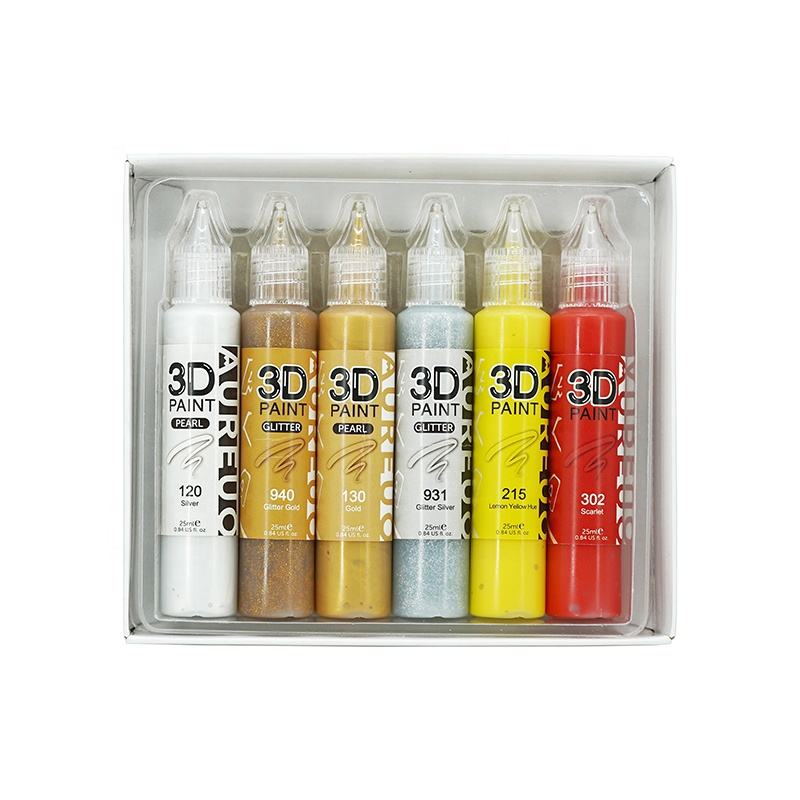 Set di Colori Acrilici AUREUO di Alta Qualità, Lisci e Resistenti al Sole, Confezione Mista 3D da 6 Colori, 25ml, Personalizzabili per Tela e Carta