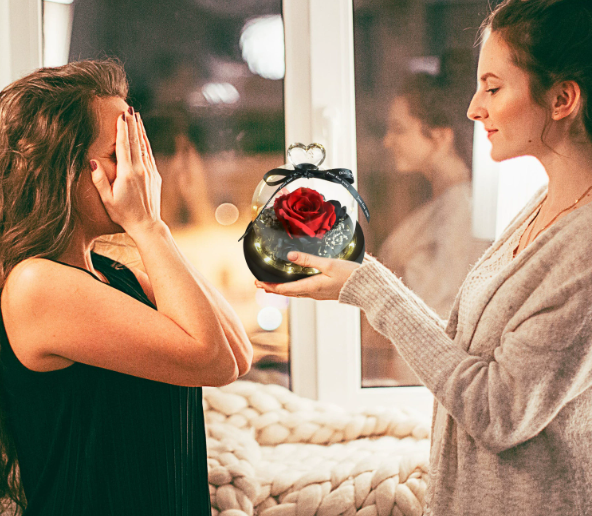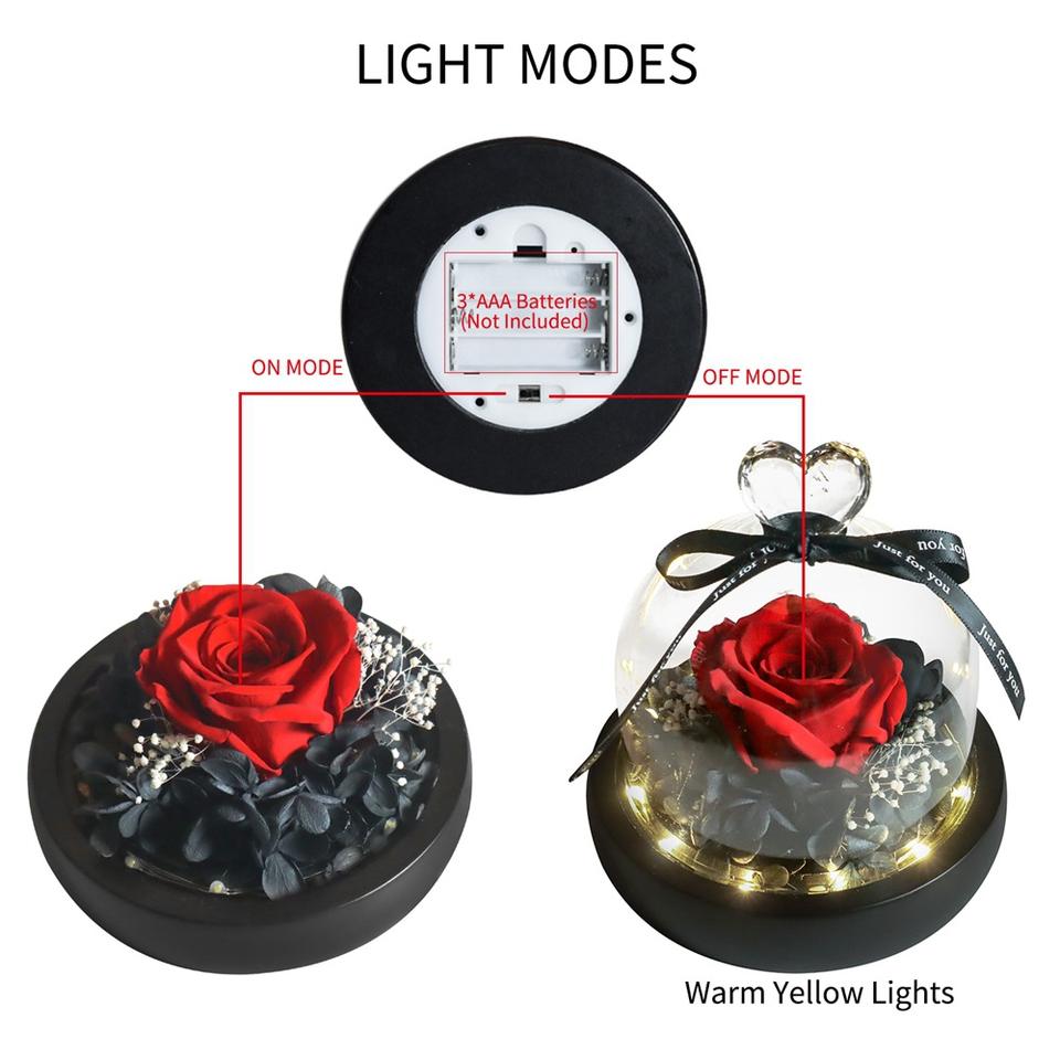 AYOYO OEM Rose Preserved Flowers Finished Colorful Rose love Glass Cover Lover's 2025 Mother's Day Gift