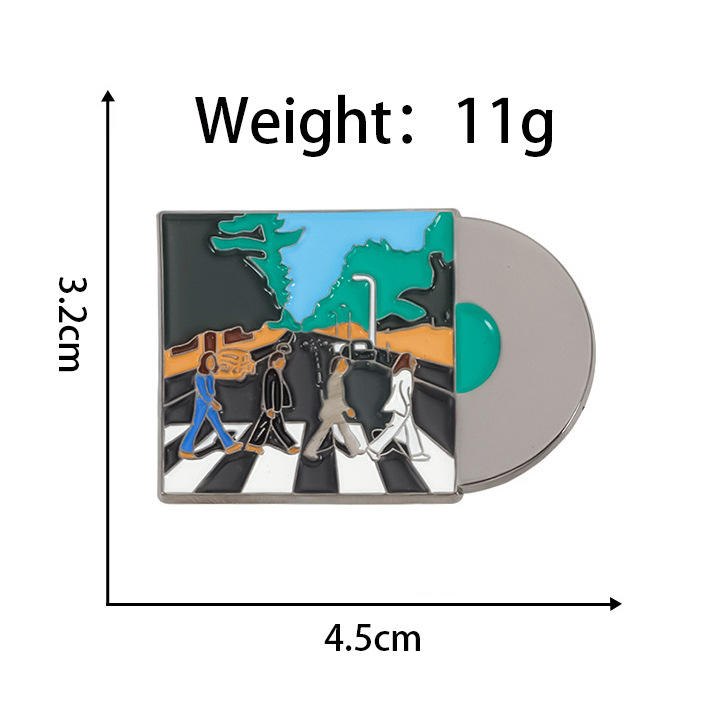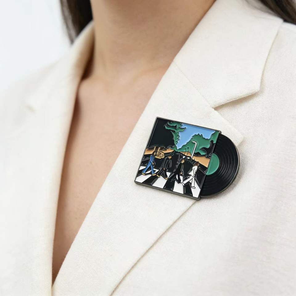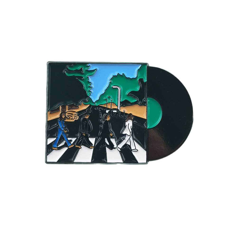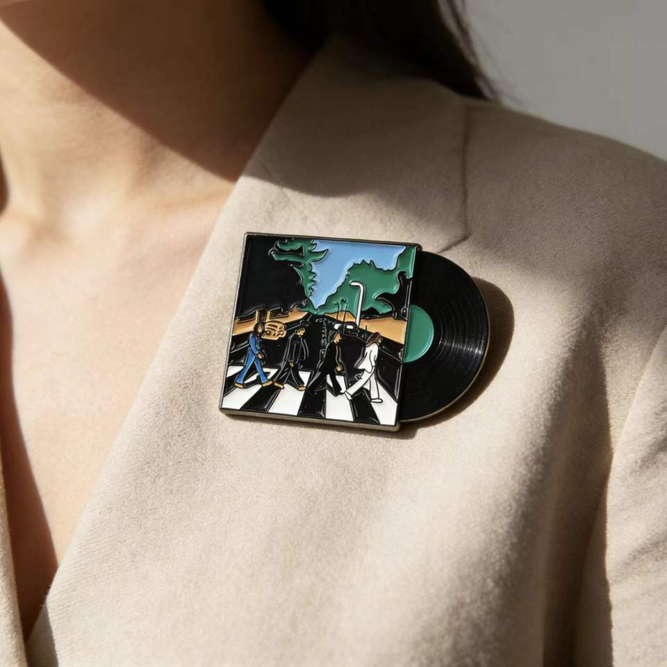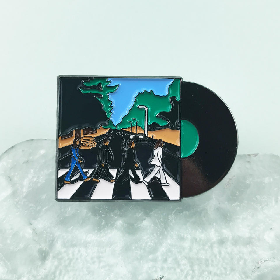 Spilla smaltata con motivo disco in vinile Abbey Road, spilla a tema album di band rock retrò