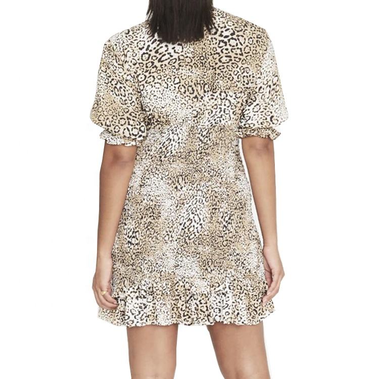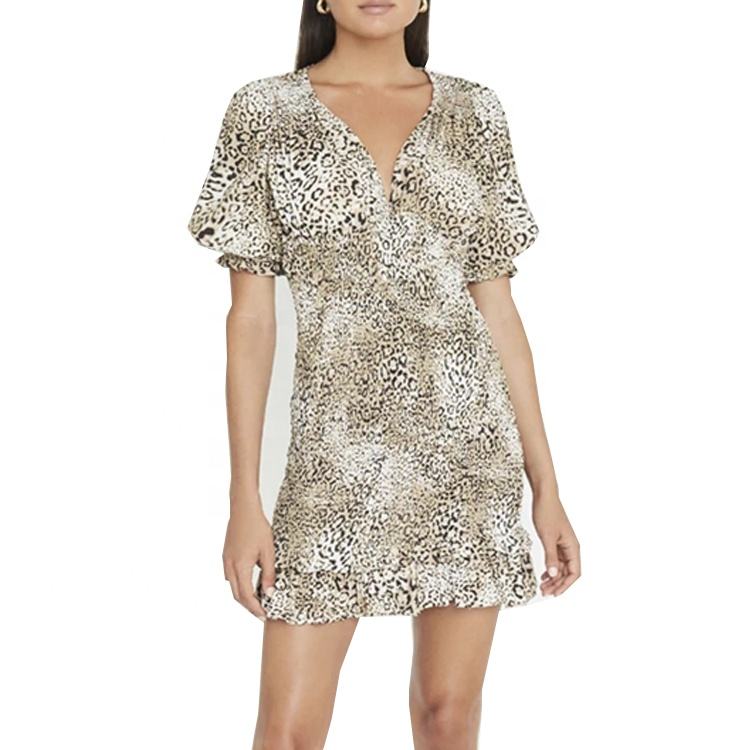 Abbigliamento personalizzato stampa del leopardo scollo a v maniche corte donna abiti casual