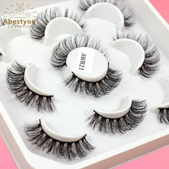 Abestyou 3d Full Strip Faux Mink 5pairs Human Hair Fluffy Soft Natural Long 10-15mm Russian Lashes Wholesale Eyelashes Extension