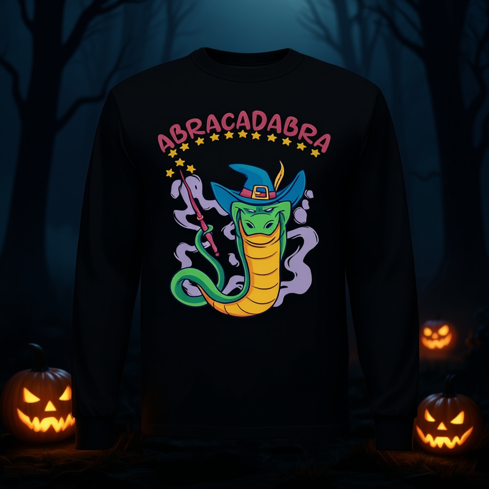 T-shirt a maniche lunghe Abracadabra Snake con design a cappello da strega magica, camicia per costume di Halloween
