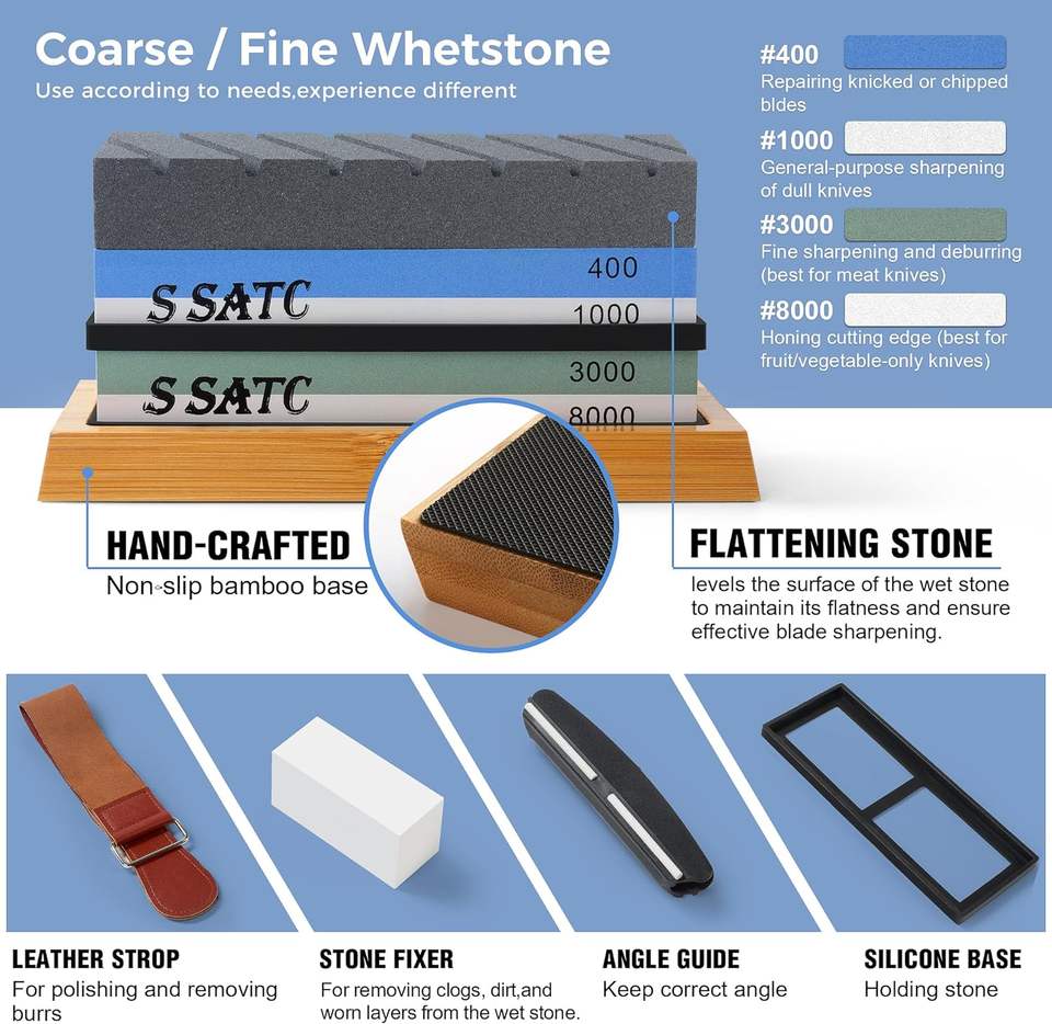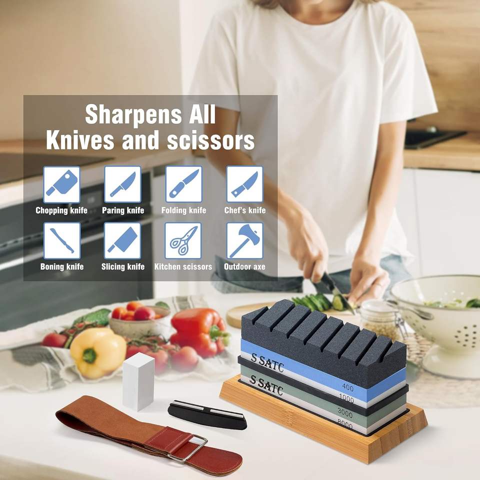 Utensili Abrasivi, Pietra per Affilatura Professionale 400/1000/3000/8000 # Affilacoltelli Efficiente in Pietra per Affilare i Coltelli