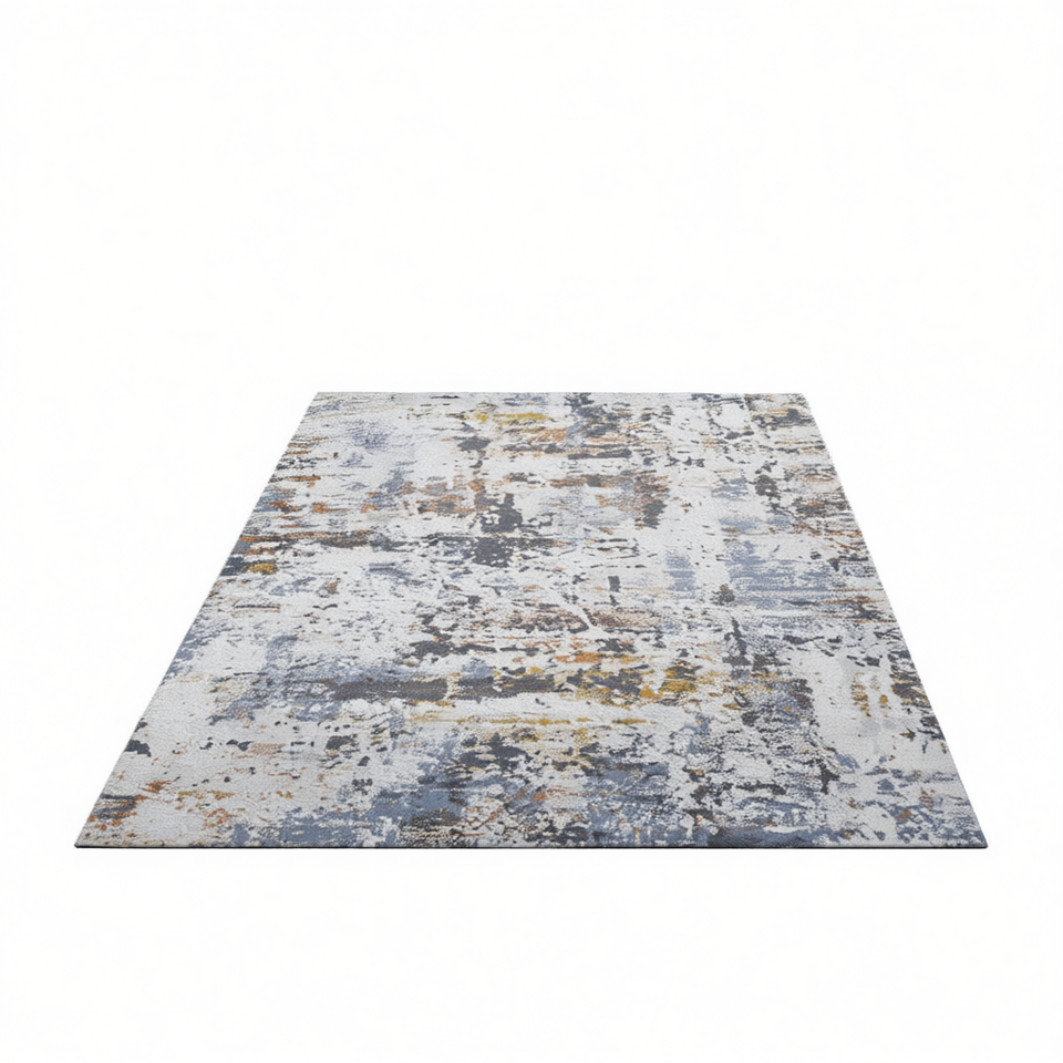 Tappeto Astratto 6x9 Avorio Blu Bohemien Reversibile in Poliestere Realizzato a Macchina Anti-Pelo per Casa Ufficio Soggiorno Camera da Letto