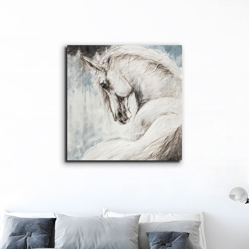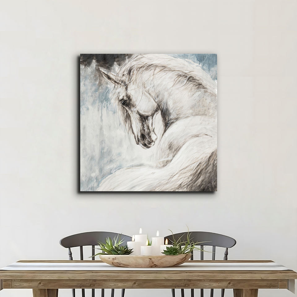 Abstract Horse Textured Art Black and White Animal Painting Art White Horse Original Watercolour Painting of Horse
